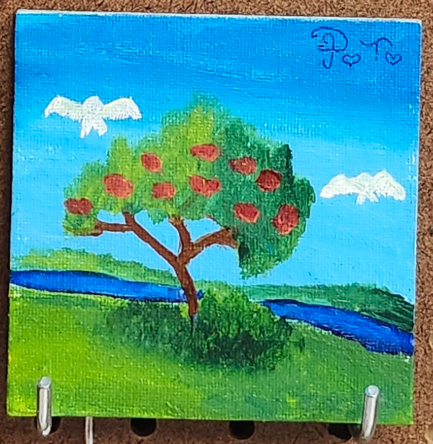 Original acrylic art painting by Phoebe Trites on 4 x 4 magnetic canvas created 2025.